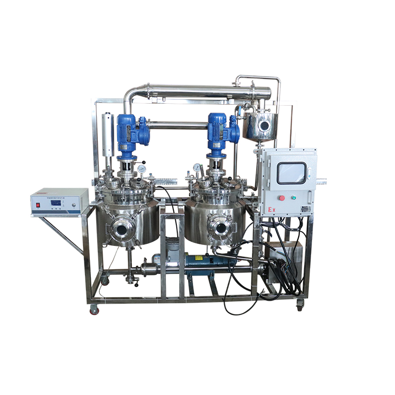 本設備適用于中藥、植物、動物、食品、飲料、化工等行業的常壓、微壓、水煎、溫浸、熱回流、滲透、芳香油成分的提取及有機溶劑的回收等多種工藝。采用動態提取濃縮,時間短,效率高;本設備采用電加熱方式,自動化程度高,罐內配備CIP清洗系統,符合GMP醫藥標準,本設備主要適用于高校、研究所和企事業單位實驗室研發及中小試生產線。